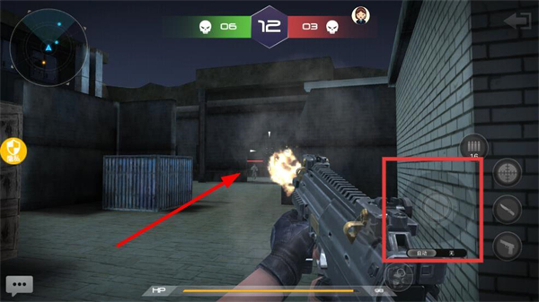 2、右侧射击区域控制开火,遭遇敌方时需快速瞄准射击,优先攻击暴露的敌人,若自身处于劣势可退回掩体后,待时机合适再探头反击。