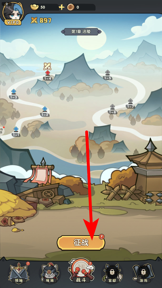 2、玩家游玩体验,然后征战挑战关卡,在关卡选择界面,点击征战,进入相应的关卡,开启与敌人的对战,推进游戏进程。