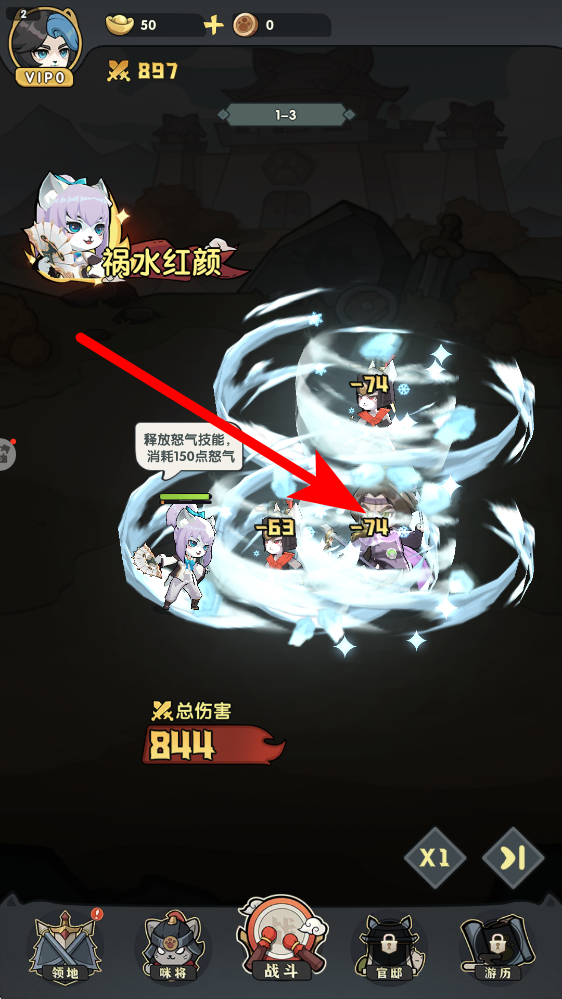 3、接着发起攻击,在战斗过程中,操控角色释放技能等进行攻击,像释放怒气技能,消耗怒气值对敌人造成伤害,击溃敌方阵容。