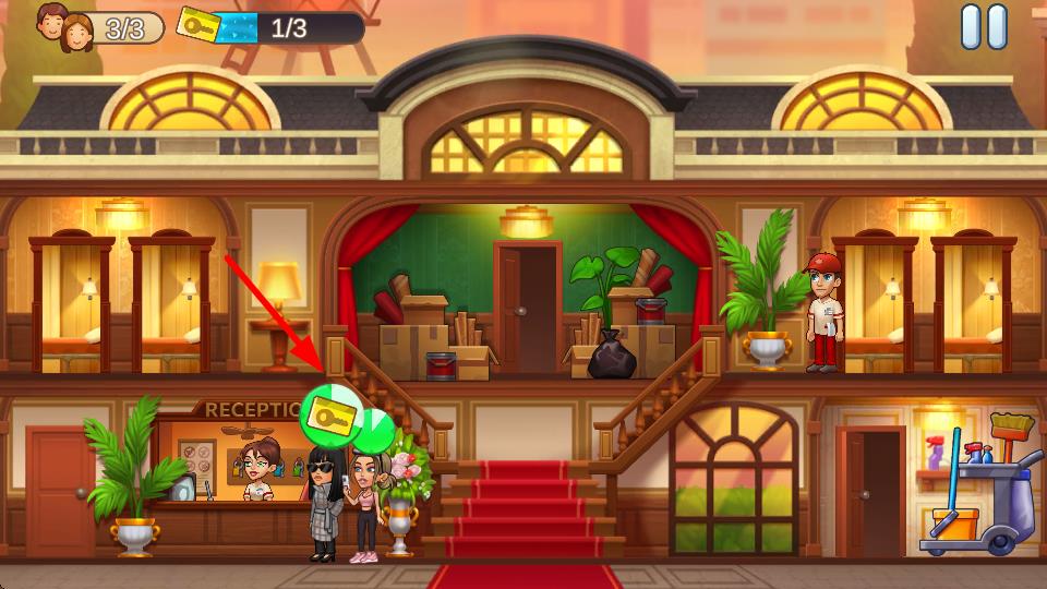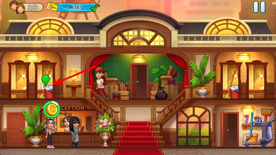 3、若房间使用后需要清洁,房间附近会出现带有数字的清洁道具图标,点击图标,让工作人员去打扫房间,维持旅店整洁。