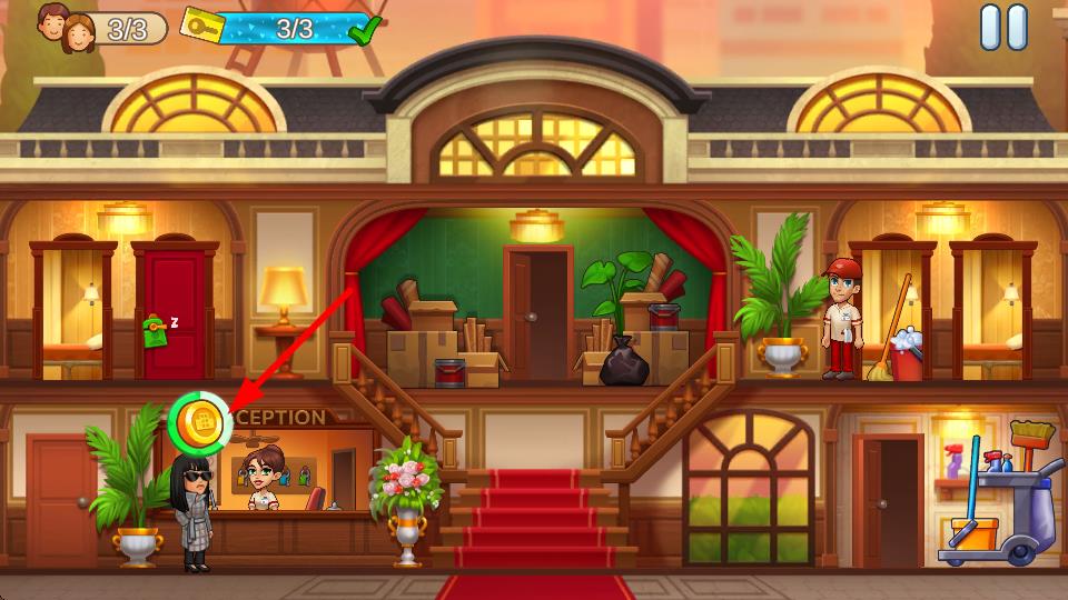 2、顾客结账时,头上会出现相应图标,当出现钱币图标时,点击图标就能收取顾客支付的费用,增加旅店收益。